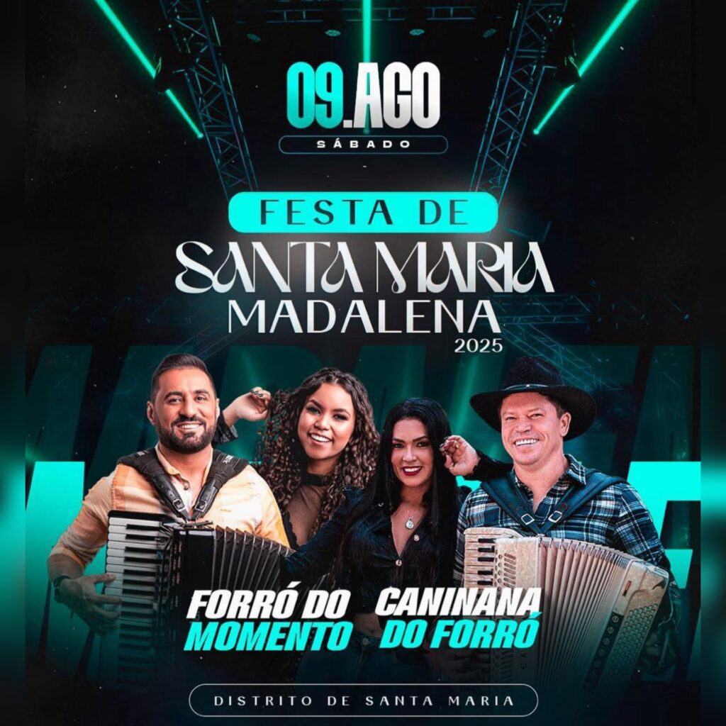 A Prefeitura de São João do Tigre divulgou nesta quarta-feira (24) as atrações da tradicional Festa de Santa Maria Madalena, que será realizada no dia 09 de agosto, um sábado, no Distrito de Santa Maria.