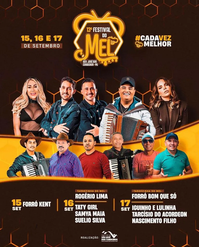 A Prefeitura de São José dos Cordeiros anunciou nesta sexta-feira (25), a programação social completa do aguardado Festival do Mel 2023. O evento promete ser uma experiência única, marcada por apresentações de artistas de renome nacional. Além disso, não poderia faltar os artistas talentosos da terra.
