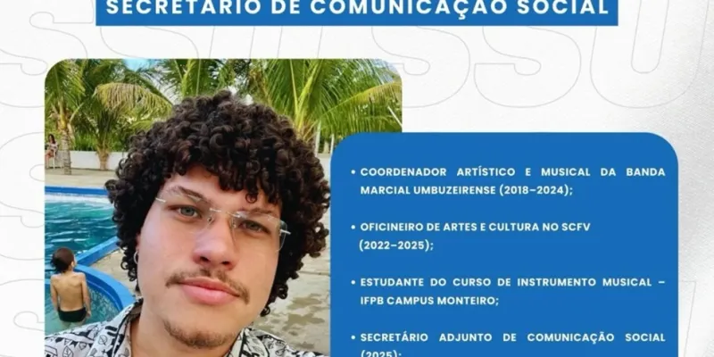 A Prefeitura de São Sebastião do Umbuzeiro oficializou a nomeação de Igor Costa para o cargo de secretário de Comunicação Social. O anúncio foi feito pela prefeita Adalcy, que destacou a importância estratégica da pasta para o fortalecimento da comunicação institucional e da relação entre a gestão municipal e a população.
