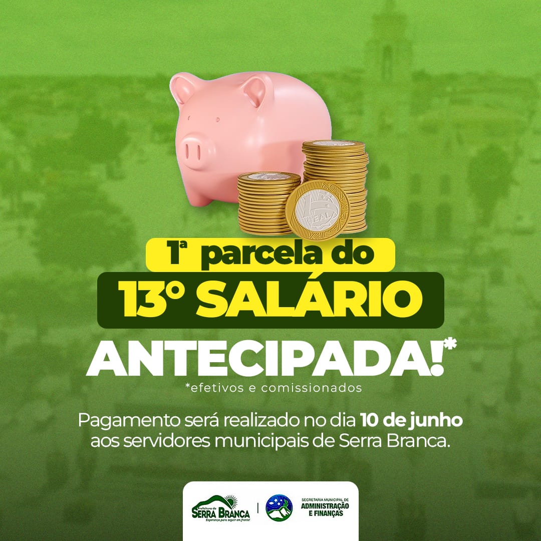 A Prefeitura de Serra Branca, antecipa nesta segunda-feira (10), o pagamento da primeira parcela do décimo terceiro salário aos servidores.