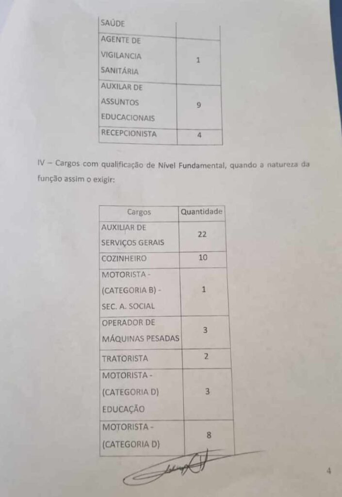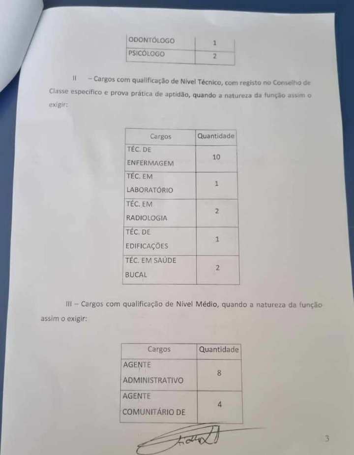 Após a regulamentação e criação dos cargos, a expectativa é que o lançamento do edital seja divulgado em breve. Os cargos estão distribuídos em níveis médio e superior, atendendo as áreas de saúde, educação e administração.