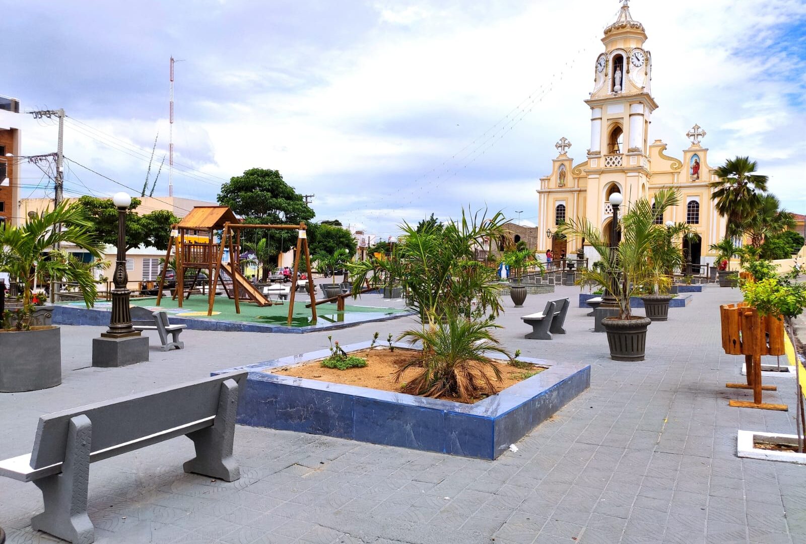 Foram instalados novos bancos, lixeiras, iluminação, revestimentos em porcelanato nos canteiros, um parque infantil contendo escorrega e balanços, além dos serviços de pintura e paisagismo.