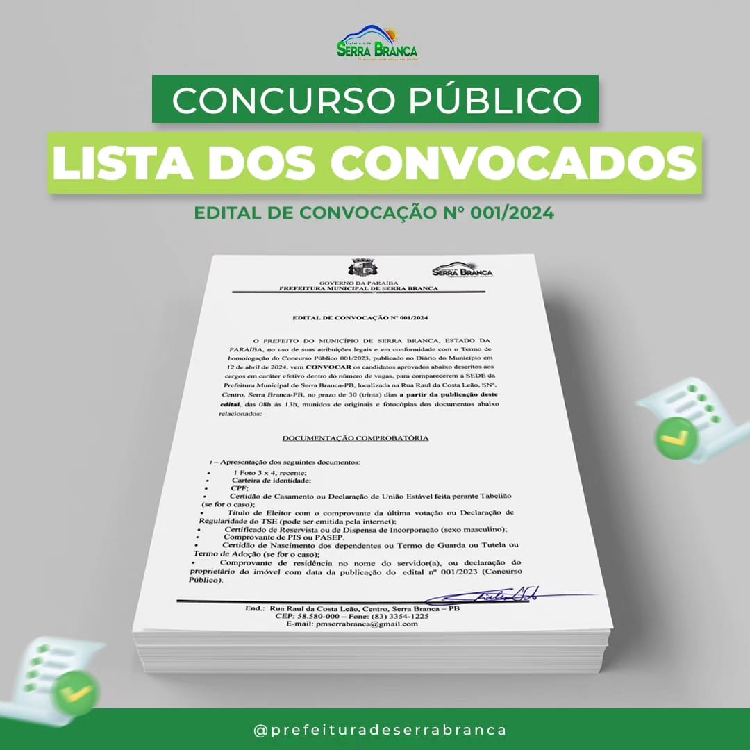 A Prefeitura de Serra Branca publicou nesta quarta-feira (14), no jornal oficial do município, uma lista, contendo os primeiros nomes dos aprovados em concurso público a serem convocados.
