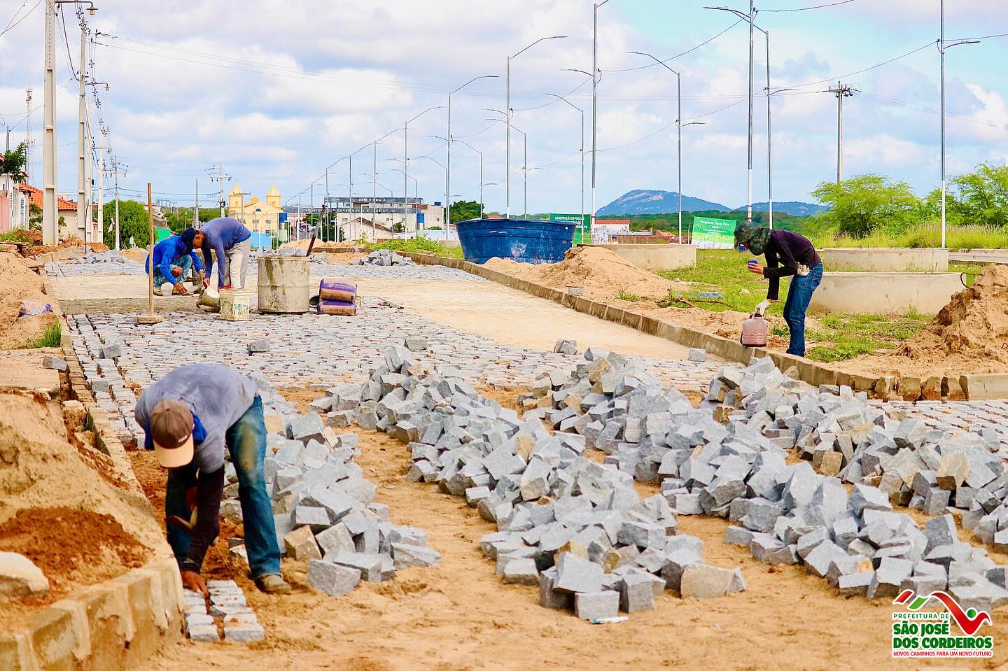 As ruas que ficam localizada na entrada de São José dos Cordeiros, estão recebendo pavimentação em paralelepípedos após a fase de drenagem em 100% das ruas.