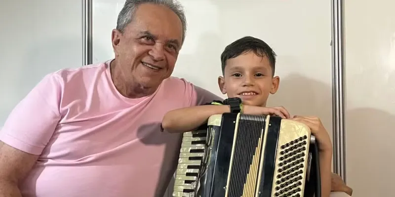 “Gabriel se encantou, saiu de lá chorando porque queria um triângulo. Chegou em casa, pediu a meu pai, que é o avô dele. Aí o pai foi e mandou fazer um triângulo pra ele. E ele era com esse triângulo na mão direto, direto (…) Em 2024 eu levei Gabriel pela primeira vez pra o São João aqui de Sumé, e ele subiu no palco e ficou encantado olhando os outros instrumentos. E daí ele começou a pedir uma sanfona”, explicou a mãe de Gabriel, Marília.