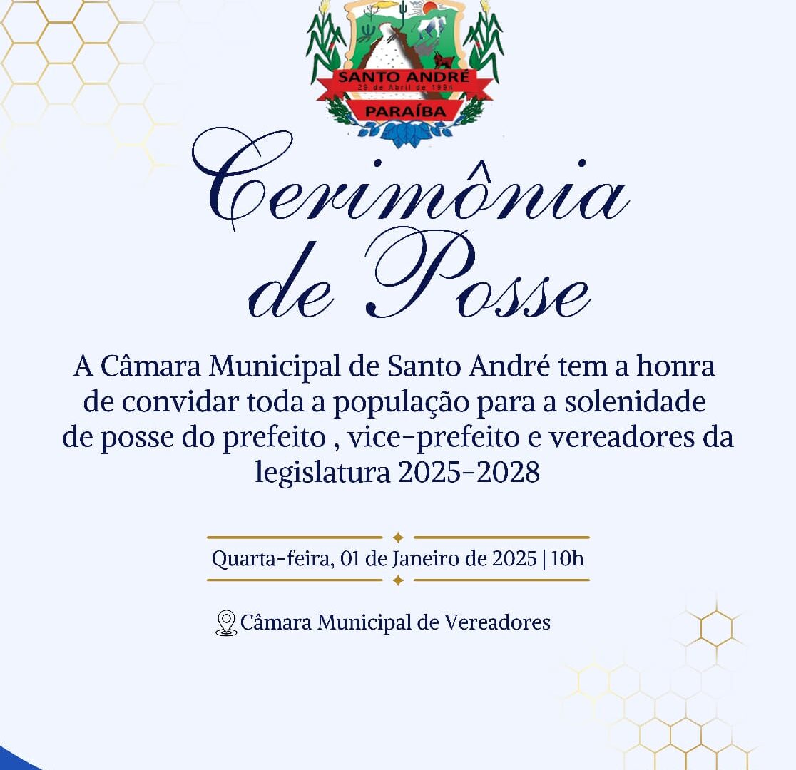 Nesta quarta-feira, 1º de janeiro de 2025, às 10h, a Câmara de Vereadores de Santo André realiza a sessão que irá empossar ao prefeito, vice-prefeito e vereadores eleitos, estarão respectivamente, à frente do Executivo e Legislativo, de Legislativo de 2025 a 2028.