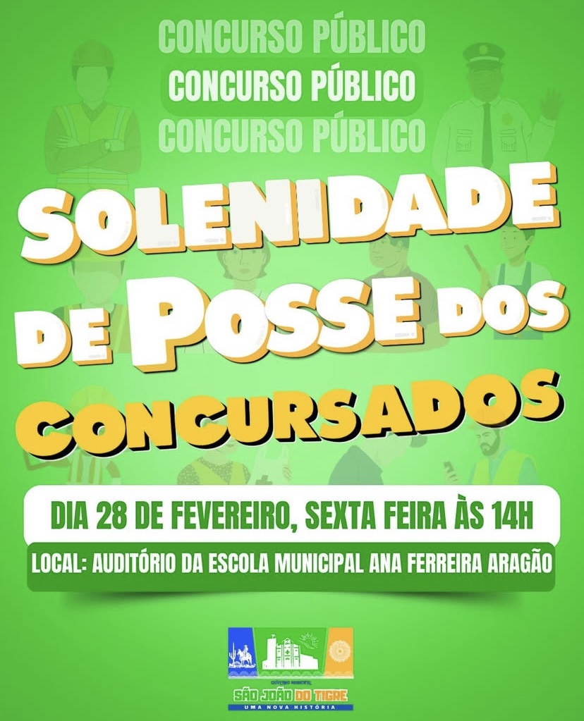 A solenidade é uma oportunidade para celebrar a dedicação dos concursados e reforçar a importância do trabalho coletivo na construção de um futuro promissor para São João do Tigre. Todos os novos integrantes estão convidados a marcar presença neste importante momento de integração e compromisso com a cidade.