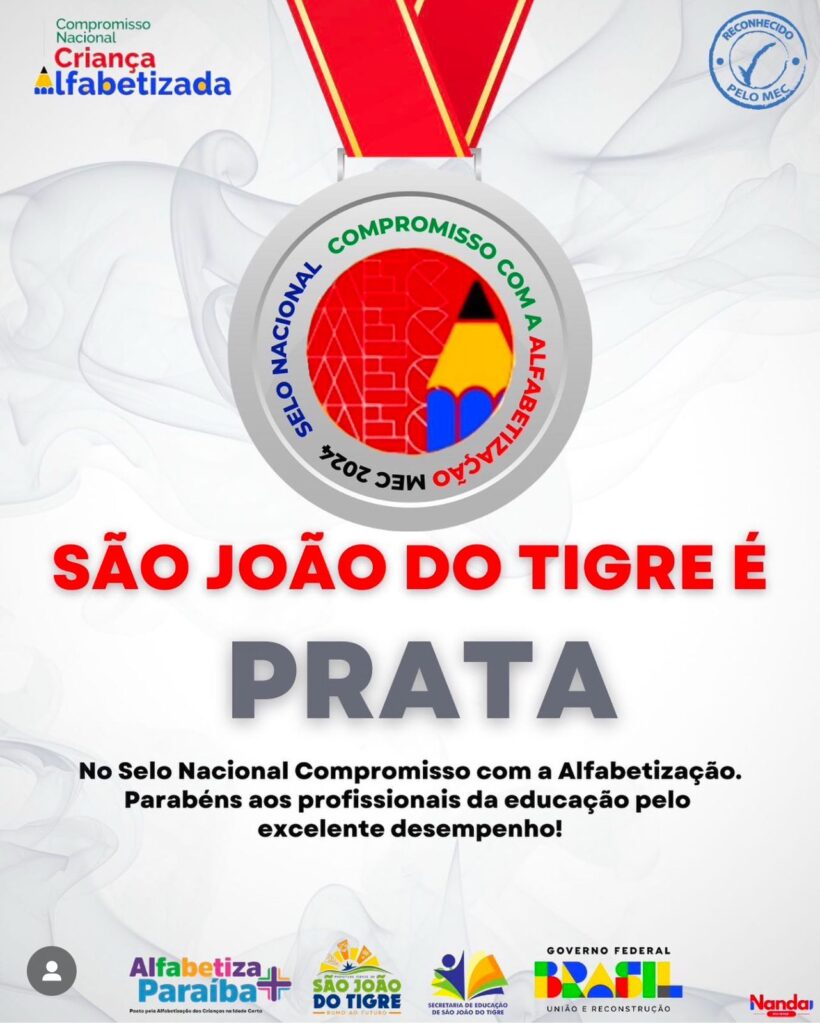 São João do Tigre se destaca mais uma vez como referência nacional em educação básica. O município foi agraciado com o Selo Nacional do Compromisso com a Alfabetização 2024, uma iniciativa promovida pelo Ministério da Educação para reconhecer os avanços no processo de alfabetização das crianças brasileiras.