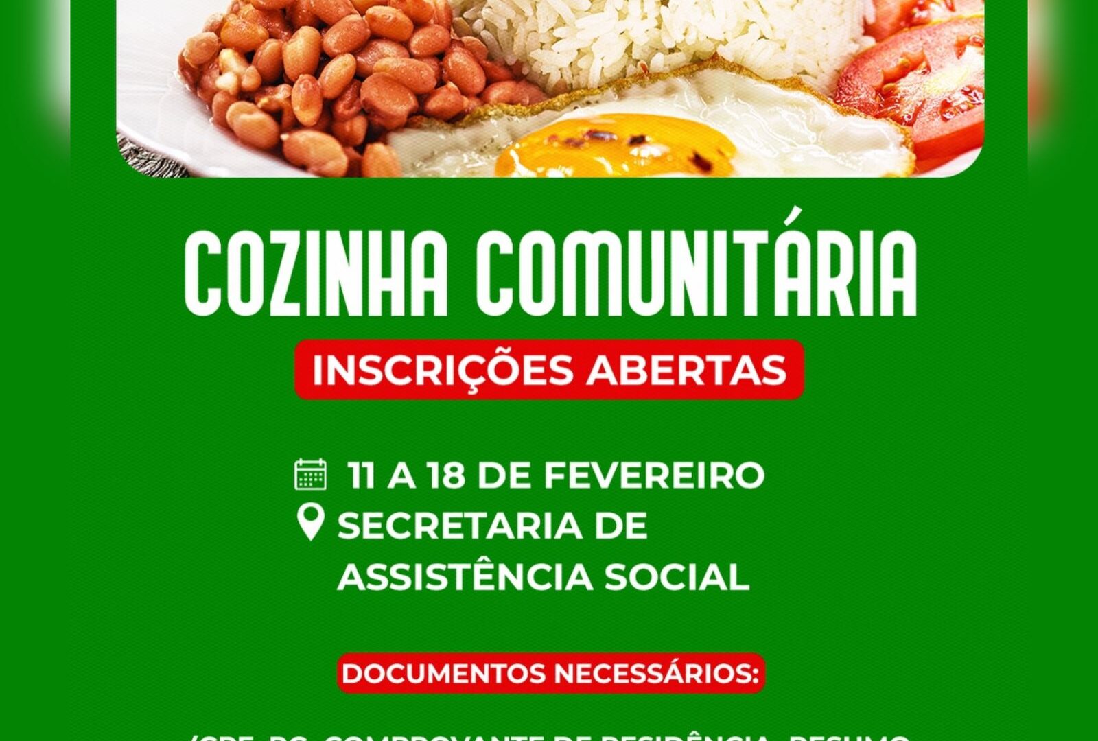 A Prefeitura de São José dos Cordeiros, por meio da Secretaria de Assistência Social, anunciou a abertura das inscrições para a Cozinha Comunitária, um projeto voltado para garantir alimentação adequada a pessoas em situação de vulnerabilidade social no município.