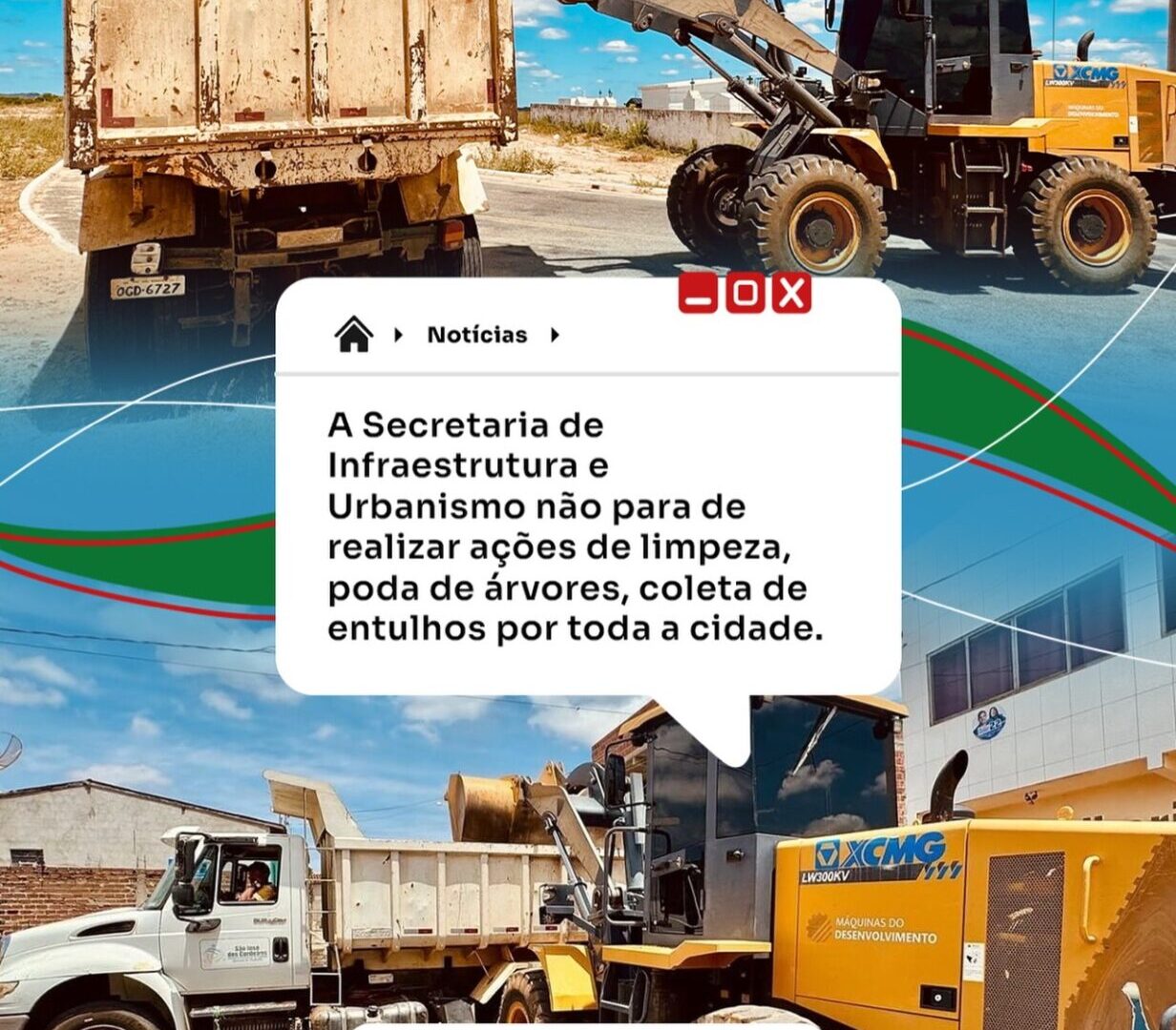 A Secretaria de Infraestrutura e Urbanismo de São José dos Cordeiros está intensificando os esforços para manter a cidade organizada e bem cuidada. Com o objetivo de melhorar a qualidade de vida da população, as equipes municipais realizam, todas as quintas-feiras, ações de limpeza urbana, poda de árvores e coleta de entulhos em diversos pontos da cidade.