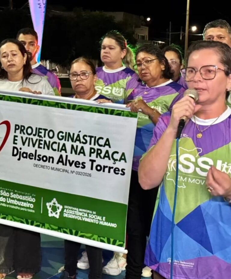 Um dos momentos mais marcantes da noite foi o retorno do Projeto Ginástica e Vivência na Praça, oficializado por meio do Decreto Municipal nº 032, de 06 de abril de 2026, assinado pela prefeita Adalcy Milene de Freitas Neves, que concede homenagem ao professor Djaelson Alves Torres (in memoriam), em reconhecimento à sua dedicação e contribuição ao município. A partir do decreto, o projeto passa a ser denominado “Ginástica e Vivência na Praça Djaelson Alves Torres”.