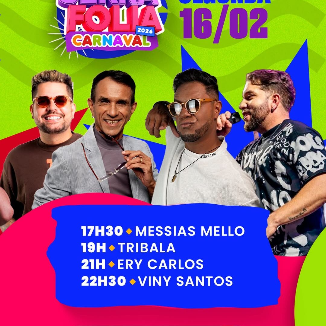 A sequência da folia continua às 19h com Tribala, às 21h com Ery Carlos e encerra em grande estilo às 22h30 com Viny Santos, completando uma noite marcada por diversidade musical e muita vibração positiva. A expectativa é de praça cheia e muita celebração.