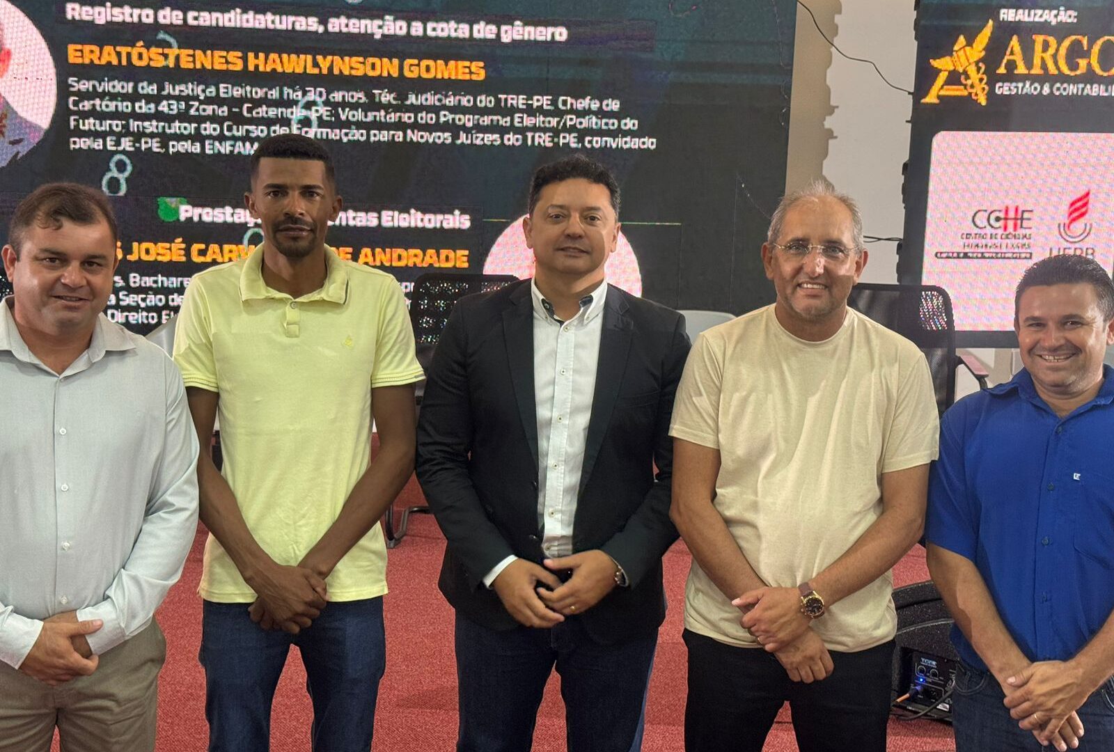 O presidente da Câmara de Vereadores de Sumé, Daniel Lêla e os vereadores Antônio Carlos Sarmento, Cordeirinho Moto Peças e Damião Rildo, participaram na última sexta-feira do 1° Simpósio de Contabilidade Eleitoral do Cariri.