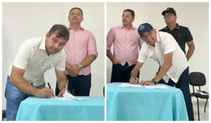 Na manhã desta segunda-feira (27), o presidente da Câmara Municipal, Daniel Lêla e o vereador Antônio Carlos, participaram da solenidade de assinatura do decreto que regulamenta o Serviço de Inspeção Municipal (SIM).